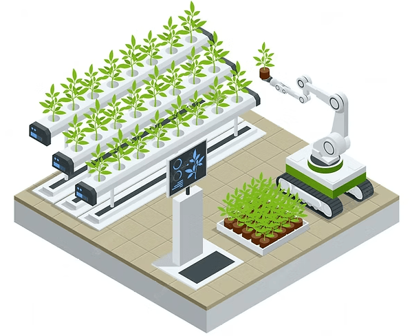 The days of having to constantly babysit your plants has come to an end. Simply sit back, relax, and let our AI-powered robots and cameras keep an eye on your produce for you!